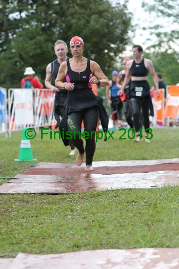 This was one of my best open water swims yet; as usual, it took me until almost the first buoy to settle in, but I was soon passing others, and I even caught up to many from the previous wave. For once, I swam in as far as I possibly could, my hands hitting the bottom multiple times, before I finally stood up to run to T1.