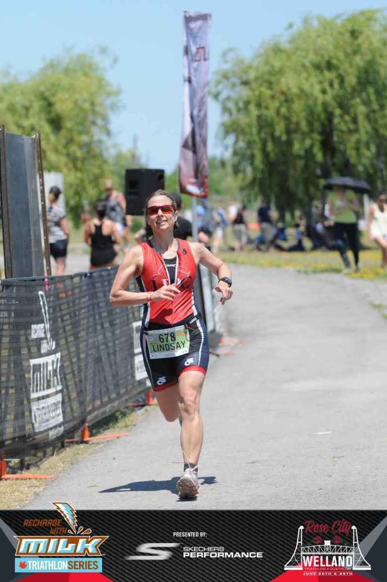 Fortunately, in the month or so after I registered, I turned a few more significant corners in my recovery. In May I saw a neurosurgeon and, while I am still being monitored with more imaging and follow-up, I did get the green light to keep doing what I’m doing (including running!), provided I continue to improve with no ill effects. So, by June I was off all medication, running fairly comfortably outside, and finished 2nd female overall in the Welland give-it-a-tri. Later in the summer, I was 12th female overall (2nd in my age-group) at the Wasaga Beach sprint triathlon.